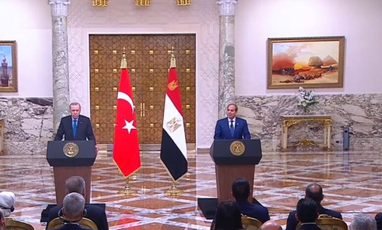 جاء ذلك عقب انتهاء جلسة مباحثات بين السيد الرئيس عبد الفتاح السيسي، والرئيس رجب طيب أردوغان، رئيس الجمهورية التركية، بقصر الاتحادية .