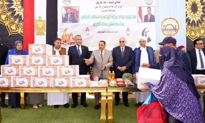 وشهد اللواء خالد شعيب، محافظ مطروح، والأستاذ الدكتور حسام شوقي، رئيس مركز بحوث الصحراء – نائباً عن السيد علاء فاروق وزير الزراعة واستصلاح الأراضي – فعالية توزيع 2000 كرتونة مواد غذائية مهداة من الوزارة لأهالي المحافظة.