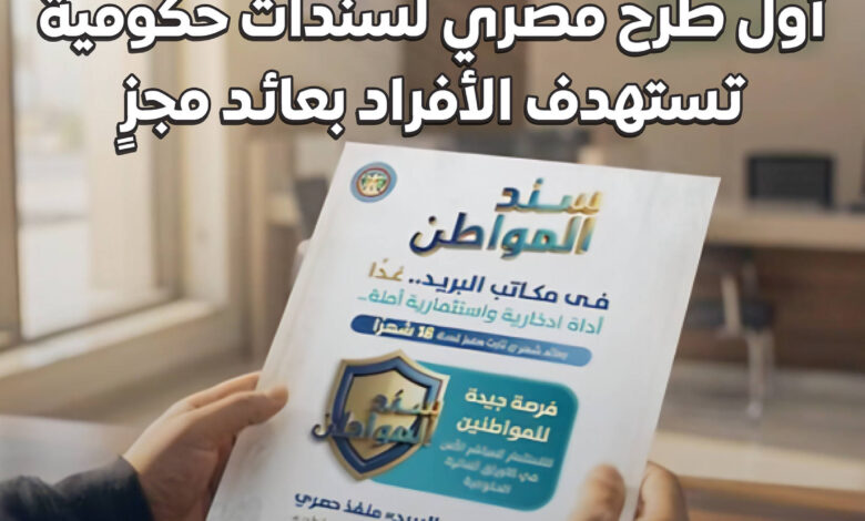ويأتي إطلاق “سند المواطن” في إطار خطة حكومية تستهدف توسيع قاعدة مشاركة المواطنين في أدوات الاستثمار الآمن، من خلال إتاحة منتج استثماري يتميز بدرجة عالية من الأمان وسهولة الاسترداد، كما يعتمد الطرح في مرحلته الأولى على شبكة مكاتب هيئة البريد المصري باعتبارها المنفذ الحصري لبيع السند، بما يضمن سهولة الإجراءات وجودة الخدمة، ويسهم في دعم جهود الدولة لتعزيز الشمول المالي، وتوسيع نطاق الوصول إلى الأدوات الادخارية والاستثمارية في جميع المحافظات.