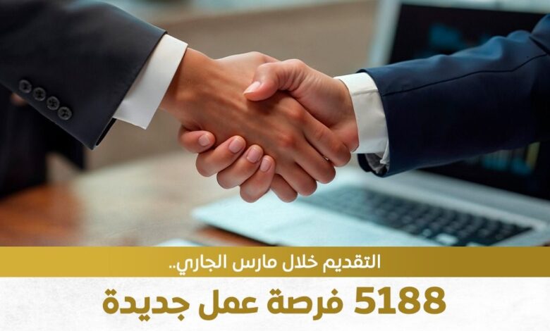 تنفيذًا لتوجيهات القيادة السياسية بضرورة توفير فرص عمل لائقة للشباب وتعزيز الشراكة مع القطاع الخاص، أعلنت وزارة العمل، عن إطلاق نشرة التوظيف نصف الشهرية متضمنة 5188 فرصة عمل.