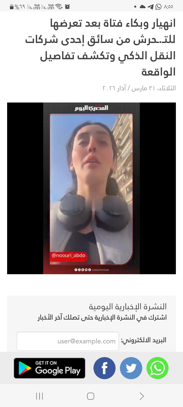 انهيار وبكاء فتاة بعد تعرضها للتـ.ـحرش من سائق إحدى شركات النقل الذكي وتكشف تفاصيل الواقعة