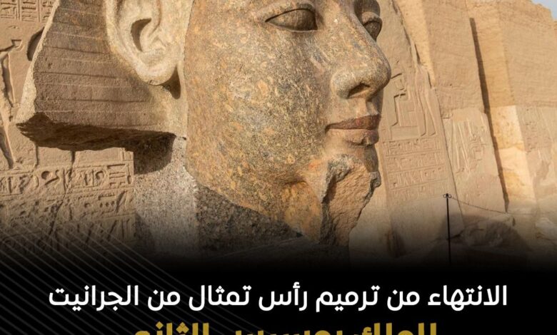 الانتهاء من أعمال ترميم رأس تمثال جرانيتي للملك رمسيس الثاني داخل معبده بمدينة أبيدوس