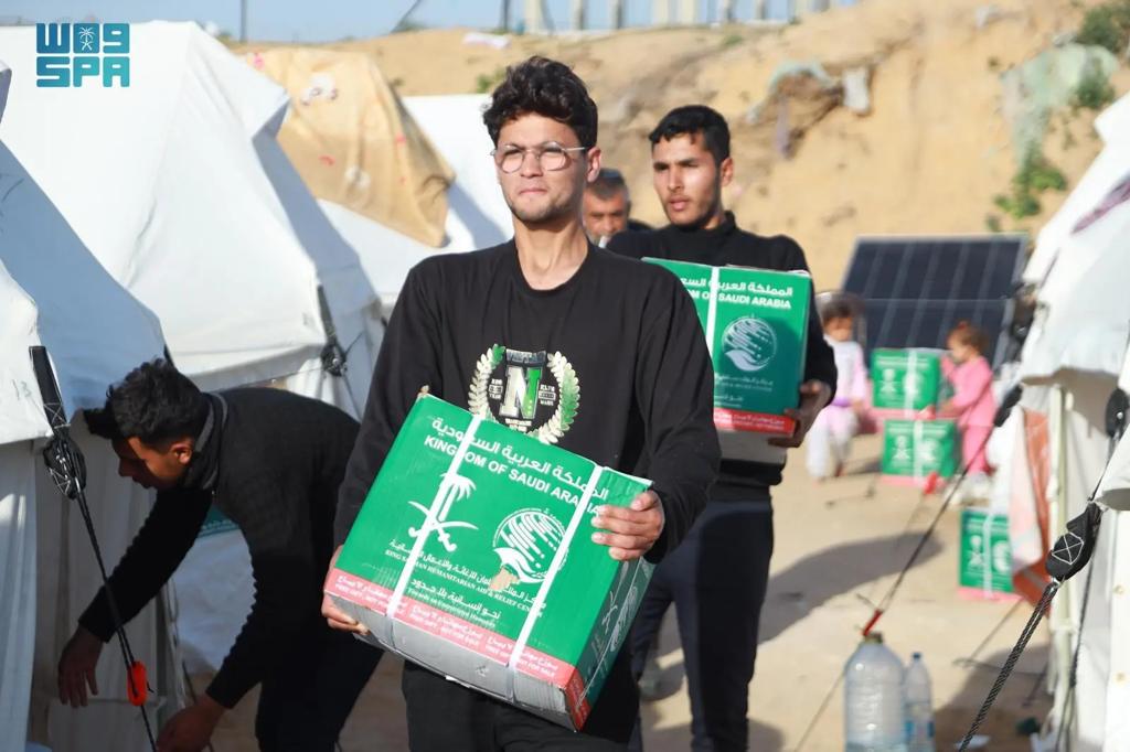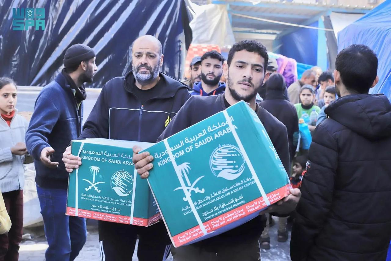 مركز الملك سلمان للإغاثة يوزع سلال غذائية ومساعدات إيوائية في مخيمات الإيواء غرب مدينة رفح جنوب قطاع غزة