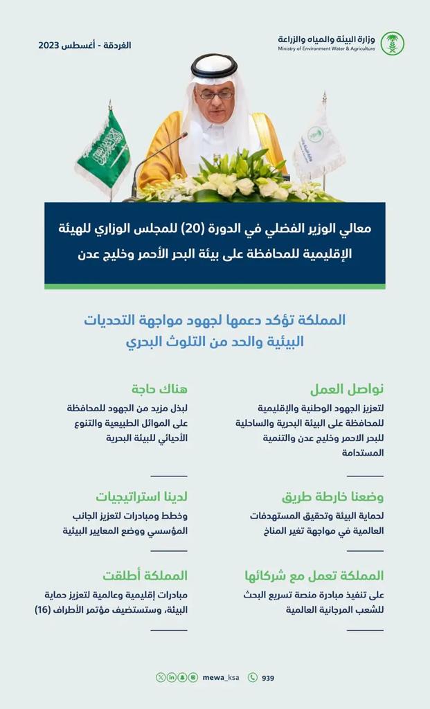 في مؤتمر بمصر.. المملكة السعودية تؤكد دعمها للجهود الوطنية والدولية لمواجهة التحديات البيئية والحد من التلوث البحري بالمنطقة والعالم