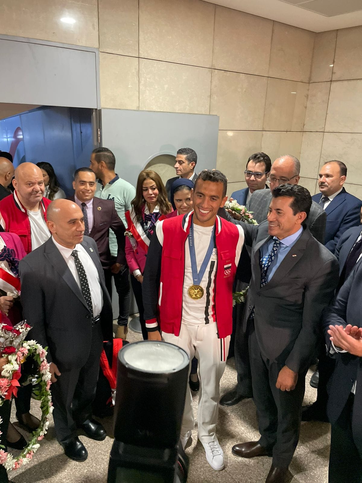 بالصور .. وزير الشباب والرياضة يستقبل أبطال مصر بمطار القاهرة