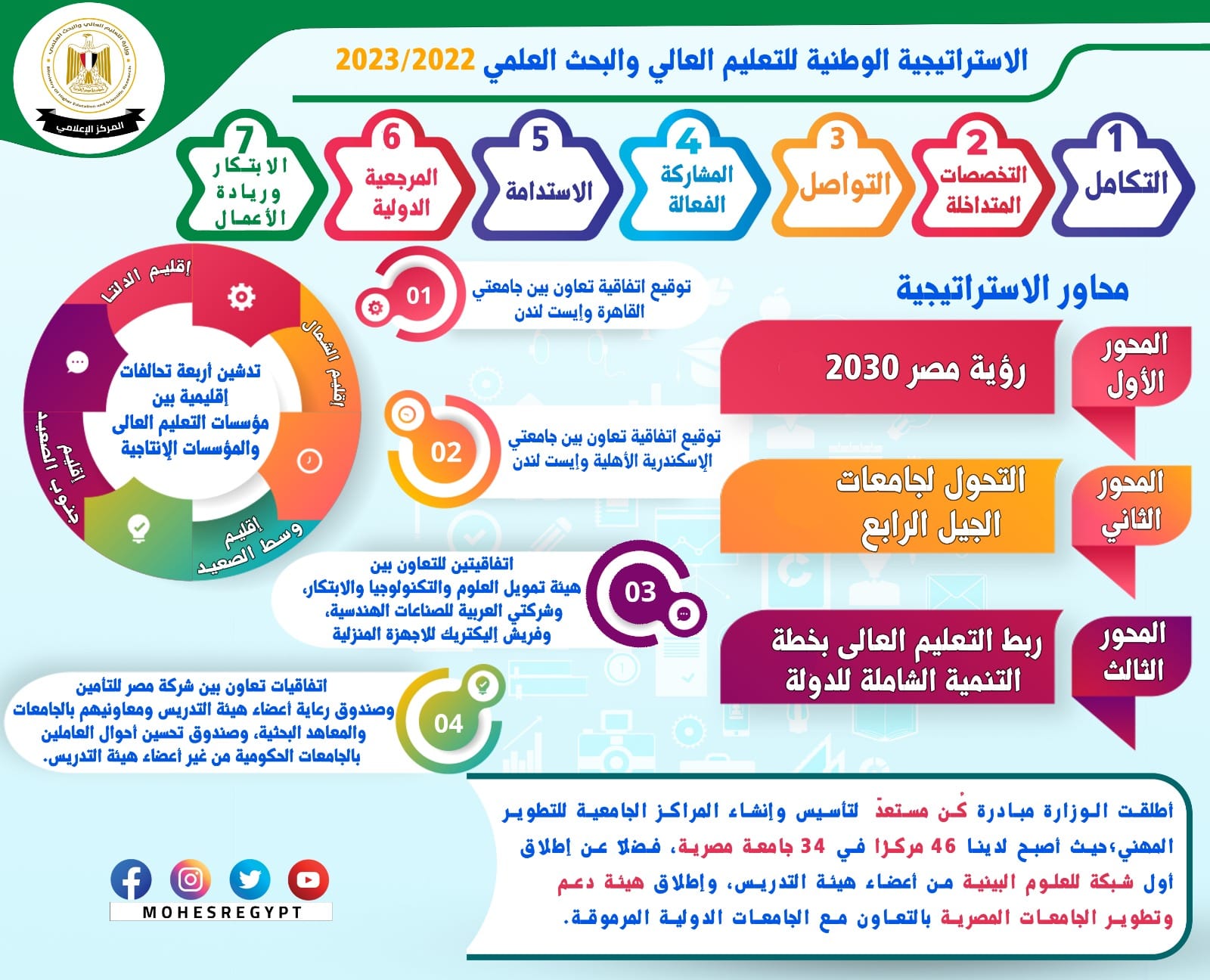 إطلاق الإستراتيجية الوطنية للتعليم العالى والبحث العلمى وتوقيع أربعة تحالفات تنفيذًا لها