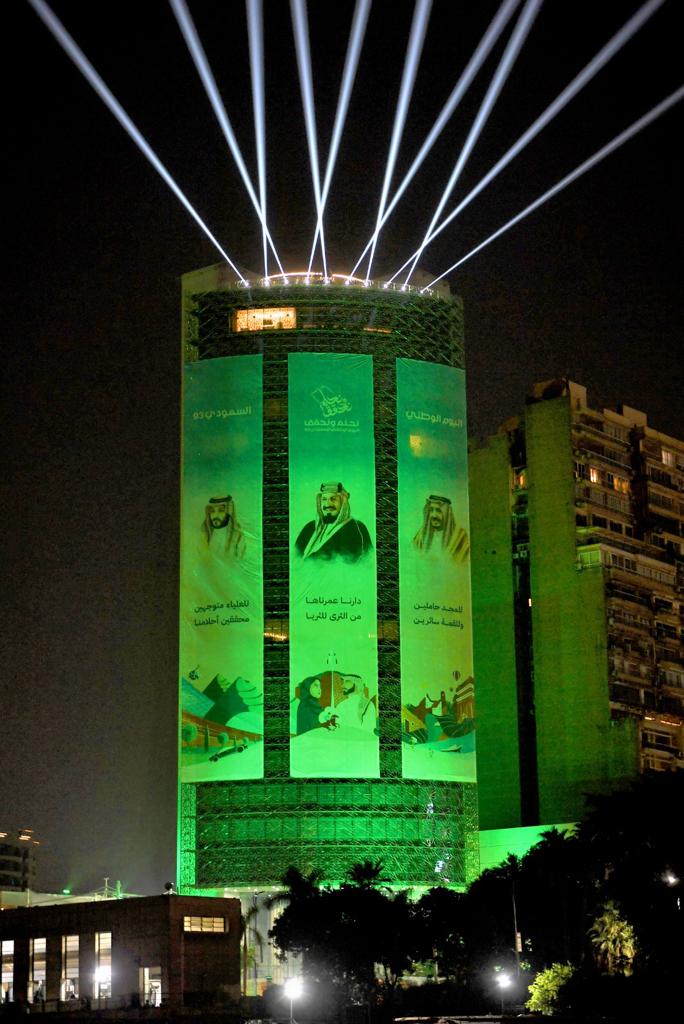 السفارة السعودية بالقاهرة تزين المبنى بمناسبة اليوم الوطني ال ٩٣