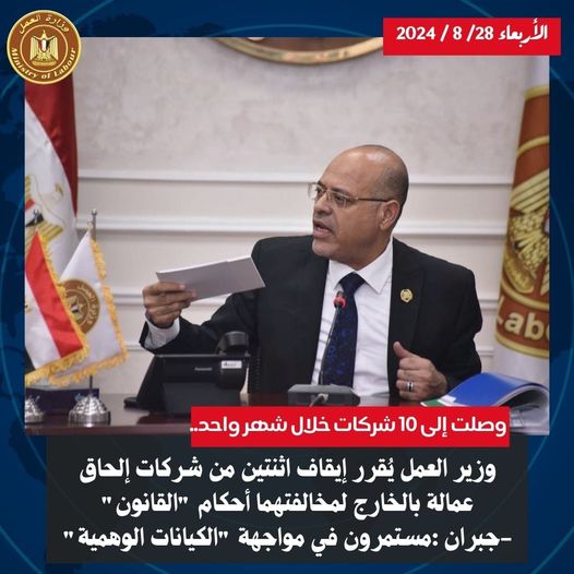 كتب |الثائر العربى قرر محمد جبران وزير العمل،وقف نشاط اثنتين من شركات إلحاق العمالة المصرية بالخارج ،وهما شركتي :الأضواء والتي…