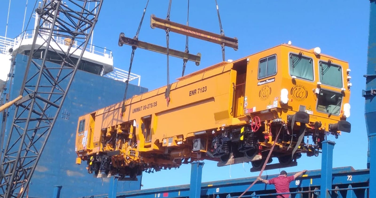 وزير النقل يعلن وصول 16 عربة ثالثة مكيفة جديدة وعدد 4 ماكينات لصيانة وتجديد السكة من أحدث الطرازات الموجودة فى العالم الى ميناء الإسكندرية