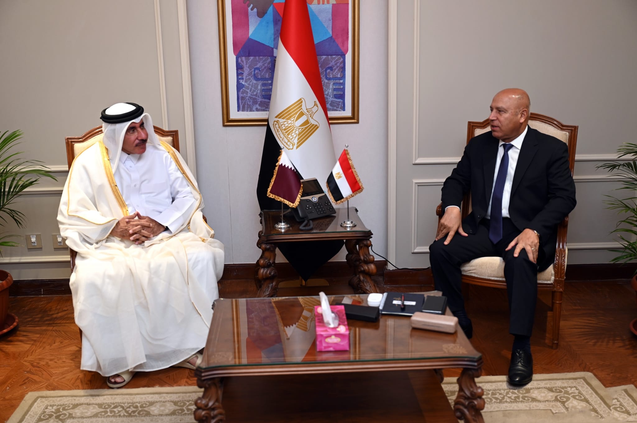وزير الصناعة والنقل يستقبل وزير المواصلات القطري لبحث تدعيم التعاون بين الجانبين في مجالي النقل والصناعة