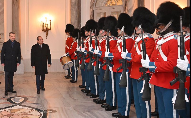 الرئيس السيسي وملك الدنمارك يستعرضان حرس الشرف
