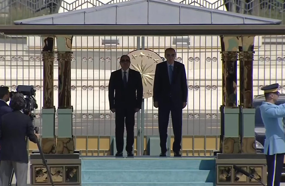 الرئيس السيسي وأردوغان يستعرضان حرس الشرف بالقصر الرئاسي التركي