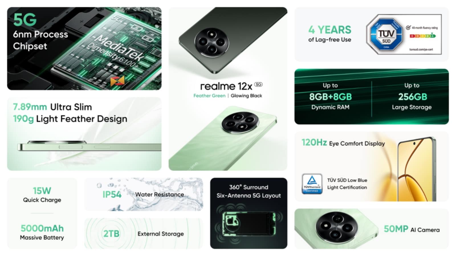هاتف realme 12x 5G يتميز بأقوى شريحة 5G في فئته ويأتي بأفضل المميزات وسعر تنافسي