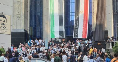 اشعل المتضامنون بالوقفة الاحتجاجية التى تنظمها نقابة الصحفيين، اليوم الأربعاء، تنديدا بجرائم الاحتلال الإسرائيلي والانتهاكات الصارخة بغزة، النيران في علم…