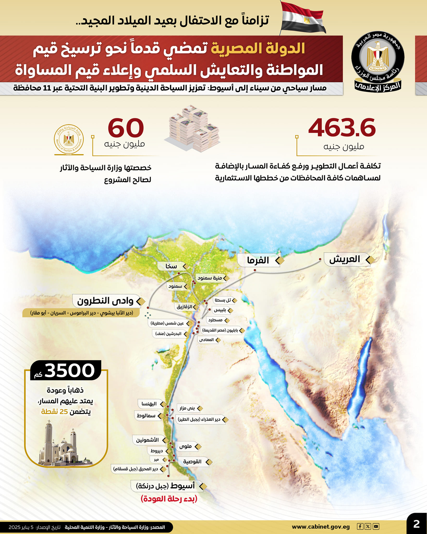تزامنًا مع الاحتفال بعيد الميلاد المجيد… الدولة المصرية تمضي قدماً نحو ترسيخ قيم المواطنة والتعايش السلمي وإعلاء قيم المساواة
