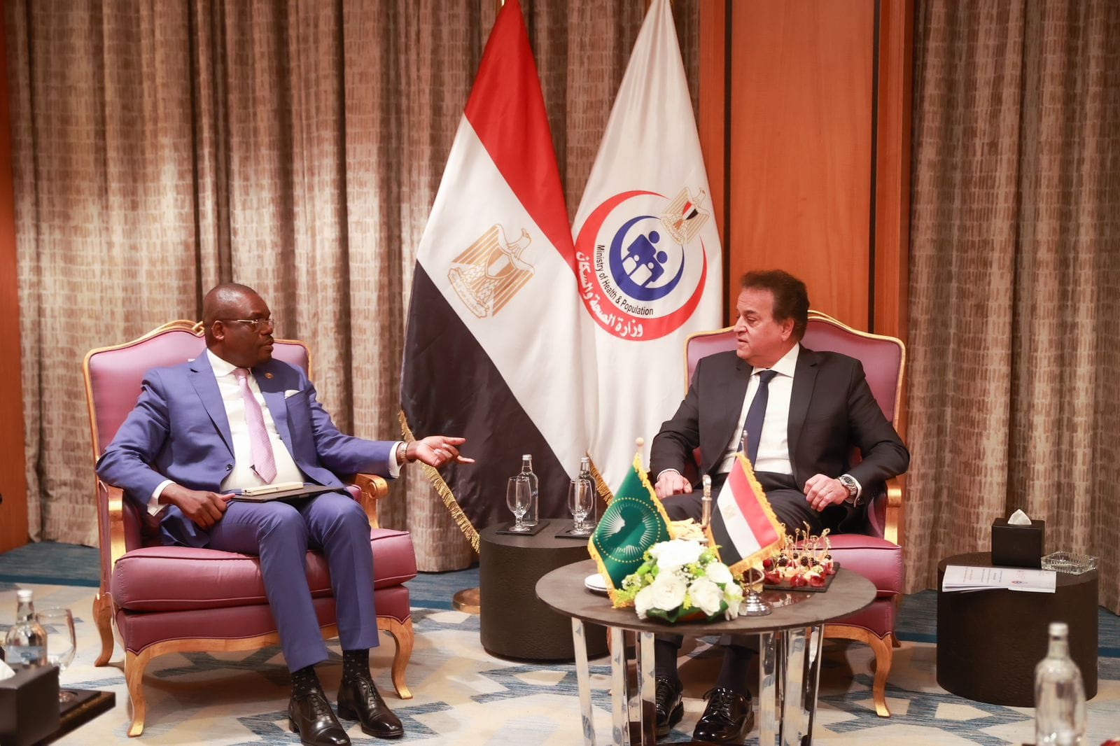 وزير الصحة والسكان يبحث مع المدير العام للمركز الأفريقي لمكافحة الأمراض والوقاية منها سبل التعاون المشترك