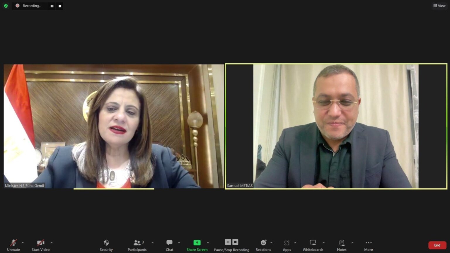 عقدت السفيرة سها جندي وزيرة الدولة للهجرة وشئون المصريين بالخارج، لقاءا افتراضيا مع السيد صامويل ماتياس مهندس إلكترونيات ورجل أعمال…