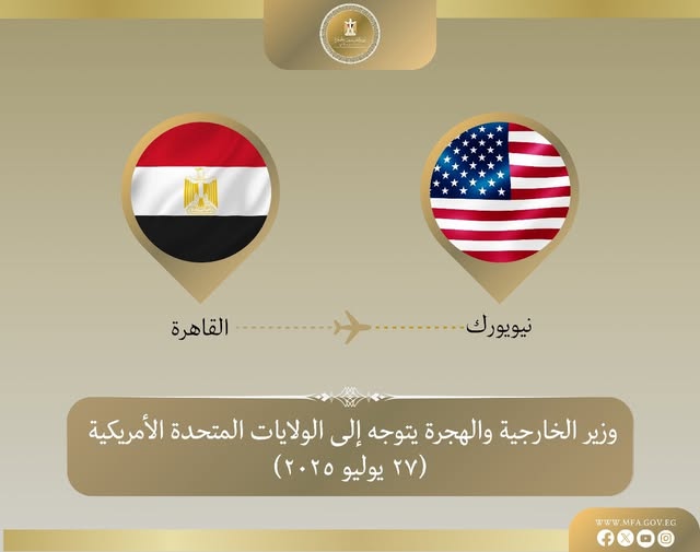 توجه د. بدر عبد العاطي وزير الخارجية والهجرة يوم الأحد ٢٧ يوليو ٢٠٢٥ إلى نيويورك للمشاركة في المؤتمر الدولي…