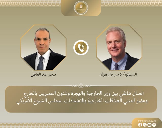 تلقى د.بدر عبد العاطي وزير الخارجية والهجرة وشئون المصريين بالخارج، اتصالًا هاتفيًا من السيناتور الديمقراطي”كريس فان هولن” عضو لجنتي العلاقات…